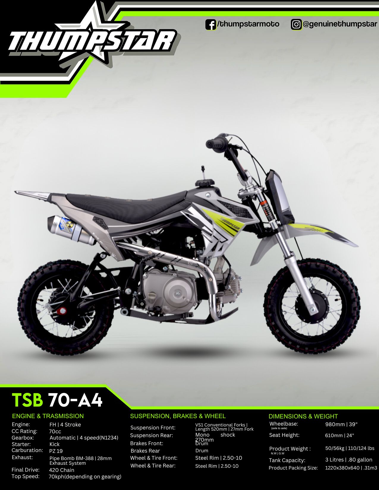 Genuine Thumpstar the original mini bike brand that started in Australia back in 2004, we have extensive knowledge on all mini bike related inquiries.. Learn more.